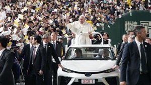 長崎、広島の後は、東京に戻られ、ドームでのミサには5万人の信者が参加しました。