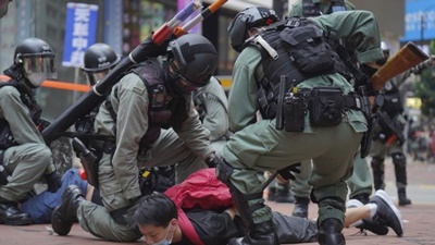 施行初日の7月1日、香港の人々は厳しい現実に直面をします。抗議に出向いた人々に機動隊は催涙ガスなどを用いて解散させ、逮捕者が300人以上出ました。