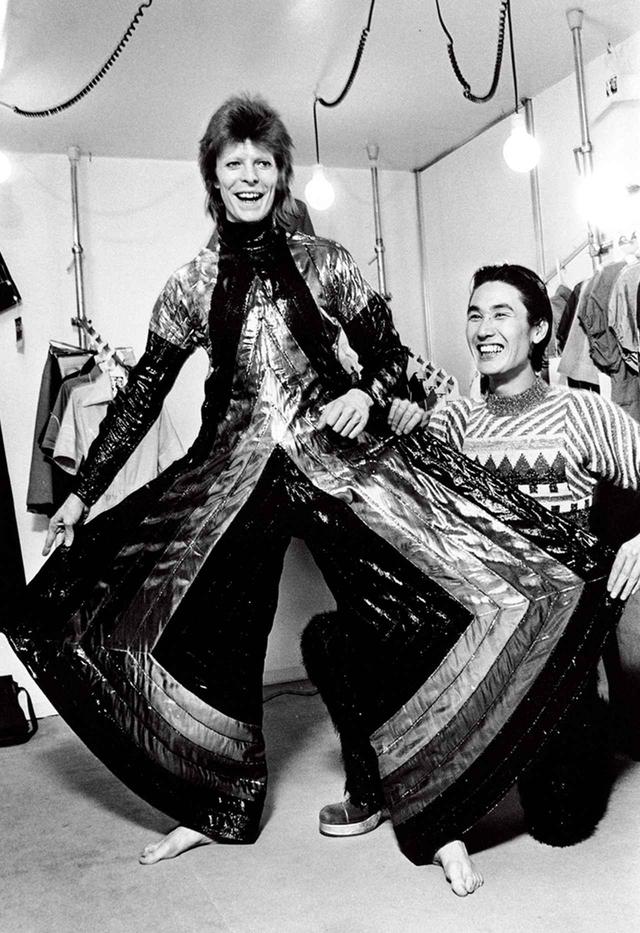 The Yokohama native debuted in London in 1971 as the first Japanese designer to organize a fashion show there. His collection in London brought him international recognition and a long-lasting friendship with some of the world’s most high-profile musicians, including Elton John, Stevie Wonder and the late English singer-songwriter David Bowie, whose alter-ego Ziggy Stardust wore Yamamoto’s bold and futuristic outfits for his 1972-73 Aladdin Insane tour.