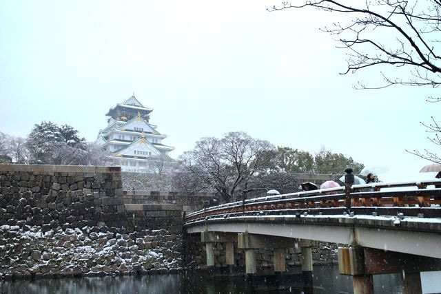 大阪城もうっすらと雪化粧していました。